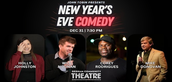 Pop the champagne and cue the punchlines! Dedham Community Theatre is hosting a comedy show to send off 2025 in style. Expect big laughs, surprise moments, and a room full of people who’d rather start the year smiling. Featuring Mike Donovan, Holly Johnston, Will Noonan and Corey Rodrigues